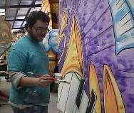 The Float Artist details the paint job, adds highlights and effects and makes the float look perfect. Here, Danny Corio paints the "Night at the Opera" float for the Babylon Krewe.