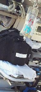 Now you are a sack of organs, whose life he can sustain without your involuntary repulsion. He will take a stainless steel intubator, which is like a long, thin shoe horn with a flashlight, and slide it far down your throat. This guides a tube which brings oxygen to your lungs and brain. "We have standing orders to do many procedures which EMTs are not trained for," Becher says. "Basically, we're emergency physicians." If he has to cut an airway to get the tube in you, he will. He can perform a crycothyrotmy and advanced heart attack procedures, he can put central lines in your major vessels and insert a drainage tube into your chest.