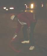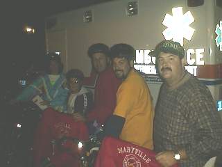 Sound crazy? It gets better. I stumbled across the second annual Midnight Bike Ride to benefit the Staunton Area Ambulance Service and I asked if I could help out, so they assigned me to arrow-painting duty, with Kevin Kuethe and Randy Williams. Get this, last year, 120 people showed up at the ambulance garage on a Saturday night at midnight and rode bicycles ten miles through town - and there wasn't even beer involved.