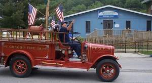 The parade ended just north of Triangle Park and the gas station, and everyone walked to the boat ramp for a small service, wreath laying and 18-gun salute before driving up the dirt road to the Pleasant Grove Cemetery on the ridge for a more formal service.