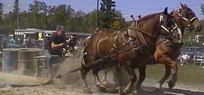 Harrison and his wife, Rene, keep a home for mentally disabled people and he owns two horses, Doc and Bud, strictly for a hobby. "The first time I pulled horses, I was fourteen," he says. "I've been hooked ever since." He trains them well and has so far won fourteen of his last sixteen pulls and placed second in the other two. He is favored to win today.
