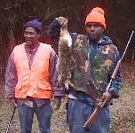 ![]() Ernie Wright holds up dinner for two, while Parnel keeps watch for more game. |