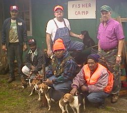 Once they find a rabbit and scare it to the surface, the dogs start yelping, and chasing the prey through the woods. This sound can snap any good hunter right out of the deepest coma. "I love to hear the dogs run," says Dewaine Malone, a state trooper from Lake City, who has been with Fisher Camp for six years. Rabbits don't flee their territory, and they usually run in a large circle, so when you hunt rabbits, you stay in that circle and, if you miss the critter the first time, just wait, and he'll come around again.