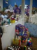 Mary Woody has also been here all this week, helping to run the food and supply distribution operation. Woody and other volunteers have sorted and organized thousands of donated items, and distributed them to anyone who needs help. "We don't really ask questions or qualify people," she says. "They just tell us how many children and adults they have and we give them what they need." A man comes in needing a flashlight, so he leaves with a flashlight. Another person needs a mop bucket, and they find him a mop bucket.