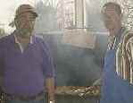 One thing Kelly and Peson know, as does most everyone here, is that after a disaster like this, you have to rebuild, and before you can rebuild, you have to clean up, and somewhere in between bulldozing rubble and hanging drywall, you have got to eat. Since that destructive evening last week, these guys have barbecued and smoked over 50 cases of donated chicken, 100 cases of hamburger, and piles and piles of steaks, shrimp, pork chops and "every meat you can imagine, except lamp and chitterlings," says Peson. But this is only a small part of this impressive operation.