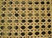 Several designs and materials used in chair caning. From left to right: Cane set in a medium weave, Asian Sea Grass in a basket weave, Cane in a straight weave and Binder Cane set in a herringbone weave.