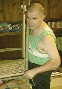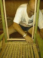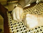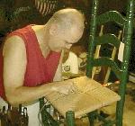 Lewis works on a beautiful, country rocker, weaving a seat and a back with thin rope made from Asian Sea Grass. When finished, he will have made a comfortable, country-style seat that will support people for generations.