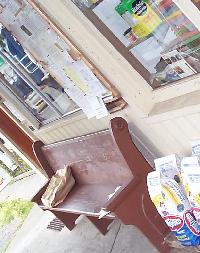 The bulletin board on the front of the store is classic small-town. A luncheon will be held next Wednesday, a small concert next month. A hat, and eyeglasses were lost (could they be Bill's?) then found, then tacked to the board. Obituaries show up here; one is just a handwritten note: "Harold Whittaker died last week."