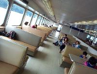 I spend the night on Shaw, and head out in the morning. On board the M.V. Nisqually, we take a quick jaunt to Lopez Island. Passengers have set up camp in the cabin. Some bring a picnic lunch, as a way of saving money and giving the kids something to do, beside pester the crew and toss large objects overboard. There are many tourists here, and some people are even sailing to or from British Columbia, Canada. Some people play cards or read books, and many just talk. On smaller ferries, which bring workers and residents across rivers, there is a greater sense of utility and loneliness. But on these larger ships, you see many couples and families and social groups, and it is a much brighter atmosphere.