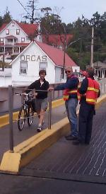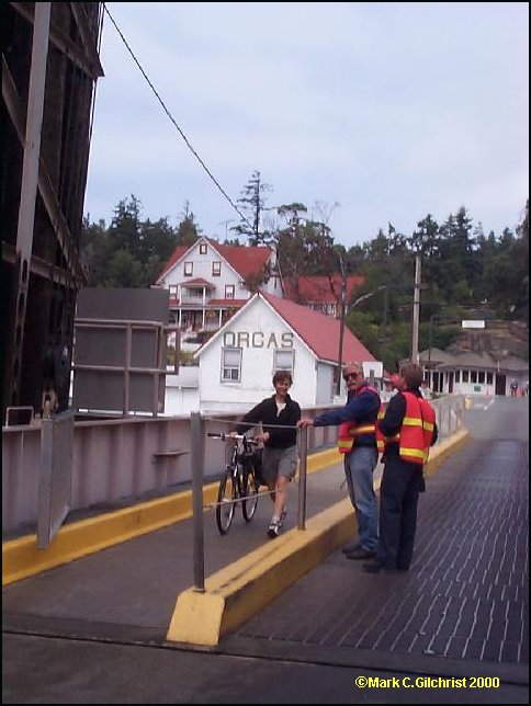 Orcas is the largest of the San Juan Islands, and has a beautiful, little town. A popular outing for Washingtonians is a bike ride around the islands. You can rent a bike for about $20 a day, and you should be able to pedal at least 3 islands. If you're already off the mainland (i.e., vacationing for a few days) the ride around the islands is free. This is a great way to travel, as you get to ride, and then take a break, then ride and take a break... There are some serious cyclists here, and they are not allowed to ride their bikes on the ship, or they would probably be climbing the steps up to the bridge.
