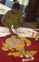 Ahillia Harnandan, one of a few good flag makers, working for the Marine Corps.