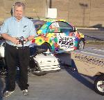 3 p.m. - I ride the spaghetti tangle of overpasses and "Texas turnarounds" to I-45 and Same Day Signs, near Bush Airport, where I meet Jeff Kaiser, an astute businessman whose work can be seen all over this city. Being scholars of the written word, we hit it off very well, and Jeff has generously offered to make labels of our 50 states to plaster on my trailer to commemorate this trip. Thanks Jeff! I spend a few more hours at Kinkos, untangling email.