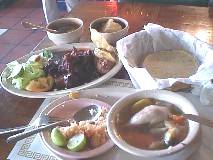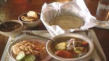 Dining in a foreign country can be intimidating. You're supposed to know how to eat this crazy food? What's with the tortilla shells! I dredge the soup looking for a goat's eyeball. I like American food. You just take the hamburger and eat it. OK, lobster can be pretty challenging, but we didn't invent that, we just found it. Right now I've got a pile of tortilla shells and - heck, I'll just roll one up and eat it. The busboy is standing like a Marine about six feet away from me, watching my every move. He's probably thinking; "I bet he rolls the tortilla up and..." Just to give them something to talk about, I pull out my camera and take a photo of my food. "American tourist!" I feel brave - and pretty bored with plain tortillas and I decide to make some kind of fajitas or something, and I smear some of the sauce on a shell, then some rice, and I cut some of the boiled chicken off the bone and hoist it up out of the soup. I roll up the shell and - to the amazement of the stone-faced busboy, I put it in my mouth. Hmmm, pretty bland. Something's not right. After my fourth shell, I'm almost out of rice and my waiter brings over another stack of shells. He looks at me with a face totally bereft of amusement and asks; "are you ready for your spicy food yet, sir?"