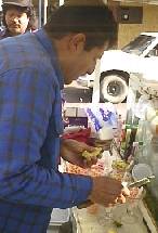 Back out on the street, I am feeling much better. With lunch out of the way, I now have two dollars to burn, on what else, but cervesas! I pull into a corner grocery store with a sign that says "Cold Beer." Inside, a boy sits on a crate, using packing tape to attach some mean looking fireworks to four-foot long sticks, like some massive bottle rockets or something. I wander to the coolers. None of the beers have price labels, so I guess I'll be paying the tourist rate. I pick out a Corona and ask the boy; "how much?" He gives me a serious, thoughtful look and says; "seven Pesos." I know I'm supposed to offer him about two Pesos, but I just give him a dollar and he hands me a couple of coins change. "Is it OK to drink outside?" I ask. He nods, back at work on his artillery. Outside, I drink the beer and people-watch. Somehow a Corona just tastes better when you're sitting on rough concrete steps on a dirty street corner, watching locals mill about, with the hot, Mexican sun bearing down on you. Back on my feet and a few blocks down the street, I happen upon the same store from which Roberto bought his tricycle. I know this, because I recognize the name and because there is another bike, just like it, for sale out front. I wander over to see if I can get a price off of it - Roberto might have been giving me a line of "toro." A young couple is looking at the bike, talking with a salesman. They look like they want to buy it, but they seem to have a hard decision to make. When the salesman turns away for a moment, I look over to the couple and ask; "English?" They shake their heads. I've got this plan, now, to try and sell them Roberto's bike. He said he would go as low as 800 Pesos, and so they could save some forty percent (even in Spanish!) They wave goodbye to the salesman and start walking away. I follow them. "Excuse me," I say. They look at me strange. I take my pen out of my pocket and fumble with it. "Did.. you.. want... to... buy... that.. bike?" I ask them. They actually look somewhat nervous, and they clutch each other's hands. I figure I can write "$800 Pesos" on a piece of paper, if I can only - I drop my pen. As I stoop to pick it up, the young man and woman actually run away from me! I don't get it... could it be that they are actually afraid of me; a dumb, white, American tourist? |