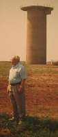 Andreas Lorenz returns from Germany in 1994 to visit the Dolezal family and his former prisoner of war camp. He stands near the water and guard tower, the only remaining structure from the camp.