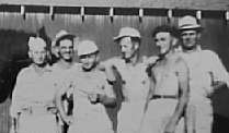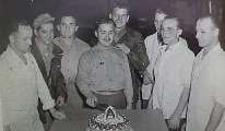 Comrades in peace: Guard and Bill Dolezal flank four of the five German POWs, who worked daily on the Dolezal farm: Warner Lunau, Andreas Lorenz, Heinz Leiss and Hans Lay, (Not shown: Warner Heese)
