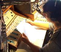 After reading the news, Sullivan jumps from her chair at the control board, and reaches for a digital audio tape, on which most public service announcements and patron spots are recorded. She handles the "board" and other equipment with ease - not a great challenge after earning a commercial pilot's license. She pulls a D.A.T. from the player and loads another, she loads C.D.s, sorts through news scripts and answers the telephone in a smooth rhythm that is nearly a dance.