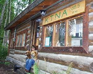 Sullivan works on a ski patrol during the winter, guides on the river in the summer, has been flying since 1992 and recently bought an airplane - a 1946 Taylor Craft. "I haven't met anyone who can keep up with me," she says. Raised in Nevada, she spent 15 years in Colorado before coming to Alaska last summer, to "learn flying from the masters." Sullivan explains why she gives up three hours of her busy schedule each week for this unusual volunteer job. "It's such a great little town and people are so helpful," she says. "I like giving back to this community that's given so much to me." But Chari Scott, who is half of the Sunday evening "Girls' Night Out" show, explains something at the heart of this position. "So many people have met me and they already know me - they recognize me because of my voice," she says. "It's great!" This little radio station in this little town may indeed be providing 15 minutes of fame for some of its residents, but it even does more than that. "We have everything from carpenters, to dog mushers here," says McGuinness. "Volunteering at KTNA is definitely a training ground and a confidence builder - I think people learn about themselves." McGuinness is one of only four salaried employees at KTNA; Sarah Birdsall covers the news - especially local government proceedings - and writes the scripts for the volunteer announcers. Diane Ziegner is the fund raiser, and Deborah Brocke is the volunteer coordinator. The station's budget is only $165,000 - which includes salaries, utilities and subscriptions to the National Public Radio programs - so the employees work only 3/4 time, and the equipment is repaired, adjusted and updated by a volunteer engineer.