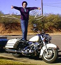 Saturday, November 14, 1998, Globe, Arizona - "Use your wrist. Hold your arm steady and twist the rope - good!" Nancy Sheppard sure made this little trick look easy when she did it, but I am finding out that there's more to spinning ropes than meets the eye. I am learning to spin a "Flat Loop" and I am learning from one of the finest trick roping and trick riding cowgirls in the world.