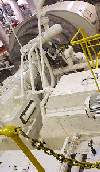 I set out to search this tub from bottom to top, and to question everyone on board. I take the elevator down to the engine room. Nobody makes ships out of wood anymore, and this whole blasted thing is steel - cold, hard steel. Stepping through hatches and scaling steep stairs, I make my way into the real muscle of this fat boy; the engine room. It takes up two stories and several rooms, cranks out 30,000 horsepower and is louder than a wet baby in a movie theater. I wind my way through every inch here; past the desalinization unit, the pair of 2,000 watt generators, the pumps, the boiler - there's enough stuff down here to run a small city, but no Diomede. I meet Douglas Crews, 2nd A/e, and I grill him hard, but he has no answers. Shouting over the noise, he puts on a good show; "We've got two boilers, here," he says, stalling. "They heat the water up to 904 degrees, creating 900 pounds of pressure."