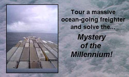 I search the decks, hoping to find something, anything, desperately looking for the missing victim. Sometimes finding the body isn't necessary, and I'll just have to find the culprit and nail him. A suspicious "clank!" booms down from the second deck, and I run up the steps to find Chief Mate Jonathan Boyce, a tall, quiet man - the perfect suspect. He's lurking around the deck, pretending to inspect the cargo. "This is called a "RO/rO" ship, Mark," he says. "That means; 'roll on, roll off' because we take cargo in the same truck trailers in which it is carried over the road. There's no need to repack the cargo!" He is trying to distract me, but I'm onto him. This man has "murder" written all over him, or maybe it's just the grease from all these dirty trailers.