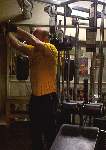 I stop in the weight room for a look-see, and I find the pilot, David Cooper, getting in some exercise. This guy works only two days a week, guiding the ship into and out of Anchorage waters, and he has nothing to do the rest of the week. Sounds crazy, but that's how it works. Seems to me, he'd have plenty of time to pull this abduction off. I grill him between reps on his abs. He works up a sweat, and I know I got him, but he claims he was in his cabin, working on a yacht design - likely story, but it doesn't stink. I can't get a straight answer from him, but I figure he's clean. Besides, if he took the dame, his parrot would squawk, so I make myself scarce.