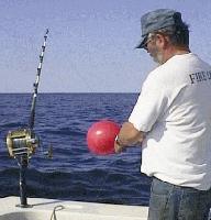 Captain Bob Briggs puts a bobber - an ordinary red balloon - on a line. When this thing disappears, we jump into action.