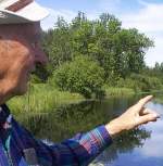 After pointing out many edible plants (and a few poisonous ones) we stop at a creek. "The cat-tail is a marvelous reservoir of food," he says. "It is high in protein, and is available at all times of the year - it's a good survival food." Quaal picks off the stamen, which contains the pollen. "If you boil that," he says. "it has a taste somewhat like corn on the cob - not as good, but somewhat good." He says that there are a half-dozen parts of the cat-tail that are edible (not the brown flower, mind you) and much of it is full of starch. He offers me a piece and I munch on it like a rabbit - it actually tastes pretty good. "You must be hungry!" he says.