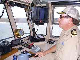 Havard enjoys piloting a ferry boat for one, good reason; stability. Not only is the ship (you can put a boat on a ship, but you can't put a ship on a boat) stable - which it is - but so is the job. Unlike many jobs on ships, his does not send him away from home for months at a time, and it does not take him into foreign waters, or out into the great, deep sea. No, being a Ferry Master in the North Carolina ferry system - the second largest in the United States, according to him - is a fairly routine job for a sea captain. He works 12 1/2 hour shifts for seven days, then he gets seven days off.