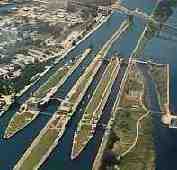 The Soo Locks (derived from the French word "Sault" meaning "rapids") is the busiest lock system in the world, passing more ships and tonnage in only seven months, than the Panama and Suez canals combined will pass in a year, according to the local newspaper; "Mackinaw Magic".