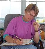 Lane grew up in the Oregon woods, and spends as much time as she can among the trees. In 1996, she shot the #3 buck in all of Oregon for bow and arrow. She has been a ham radio operator since childhood (her family had no telephone) and from the mountaintop, she uses the ham and a phone patch to keep in touch with her family. Each night, she'll talk with her husband, Alan, and their 30 year old son who, with a mind retarded to that of a five year-old, can stand to hear her voice each night. She does fear the dark, and one other thing; "Spiders, I hate them!" she says. "Now, gutting a deer, or gutting an elk - no problem, but I can't stand spiders."