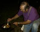 Archie is retired from a job as a civilian with the Navy, and he does a lot of fishing, using a cast net - the type you hold in your teeth. He actually makes the nets. I guess he had been casting his net that day, because he was frying up some fish in his backyard when I met him.