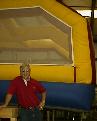 I went to HEC, a company that makes those crazy inflatable games, like the one my friend, Mark Anastasia, is shown in front of at right, and Mark saw to its replacement. Another friend, Tom Cheeves, at Airstar lighting pitched in with some decals for my trailer ("50 States, 19 Months, One Long Ride.")