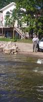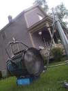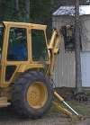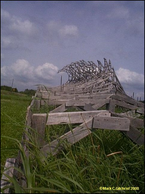 I stayed with Ron and Margo Moore, while in Lake George, on my way out of Minnesota, and they even provided me with evening entertainment. During a recent storm, this tree - it must have been 60 feet tall - fell upon their barn, and a neighbor came over, and with a deft swoop of the backhoe, he plucked that timber off the barn and laid it down. Life in a small town includes having friendly neighbors with heavy equipment, and a "we're all in this together" attitude. The Moores took me out for a delicious dinner at the Logging Camp, an endearing compound of logging museum, gift shop and restaurant, where you are served all you want, family style, until they have to roll you out the door like a felled redwood. I had a great time, and wish to thank them for all their hospitality.