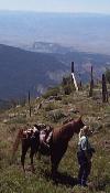 Rough Riding - Around here, people don't prance their horses around in rings, and you see enough horse trailers in a day to move an entire calvary. I saw this rider and her horse at the top of Grand Mesa, and took a shot, because she just came up a treacherous trail. Can you see where the green grass turns a smoky blue? That's where she came from, a butte with some 2,000 feet of nothing but a little trail and a whole lot of gravity.