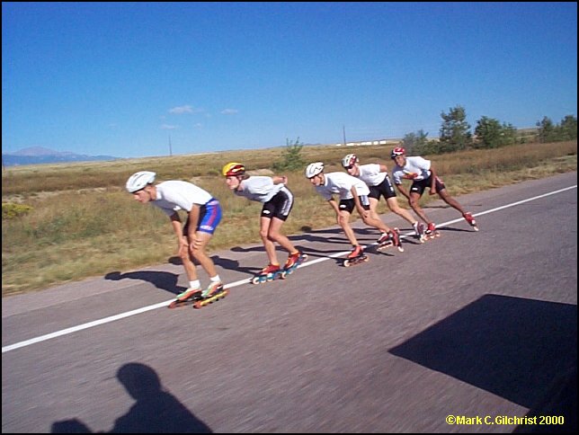 The Thrill of Victory - Coming out of camp one morning, on the east side of Colorado Springs, I saw this crew pumping some asphalt along Marksheller Road. I don't know who they are with, but I bet you'll see them on ESPN someday soon. When I found out that this city hosts the headquarters for the U.S. Olympic Committee, I sprinted to a phone, and ran voice-mail relays until I scored an interview with a winner. She's a speed skater, and you'll see her story here in just a few laps.