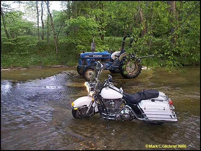 I THOUGHT I WAS PRETTY cool, riding Bob up this shallow creek, following a farmer on his tractor. The creek bed got really slick, and Bob just slid out from under me, leaving me up this creek without a ride. We righted Bob, and I got this shot. GRAVEL SWITCH, KENTUCKY.
