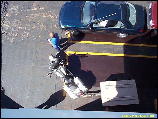 AMONG THE SAN JUAN ISLANDS, WASHINGTON. Don't know who that is on the ferry next to Bob, as we head out to Shaw Island, in the San Juan Islands.