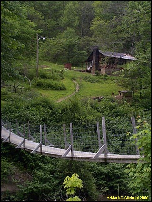 I DREAM of living in a place like this, in a cozy cabin with a verdant, sloping lawn, and a swinging footbridge separating me from the cruel world.