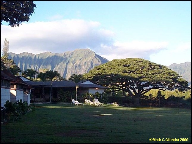 IT ISN'T THE HYATT, thank goodness. Staying on the tourist strip makes me feel like a tourist. Staying here, at the YWCA camp on Ohau's Kane'ohe Bay (eastern shore) it made me feel a bit like a god.