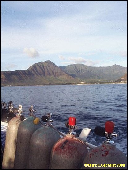 One of the best things about scuba diving in Hawaii is the view from the boat! (Mailli Point, on the western shore.)