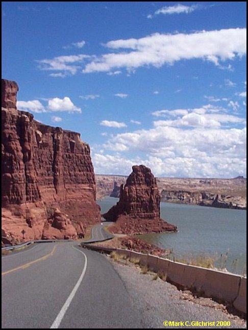 WOULDN'T YOU LIKE to have to ride this road to work every day? (Rt. 95 over White Canyon, in southeastern Utah.)