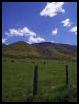A FENCE, and a pasture and mountains, somewhere in the west.