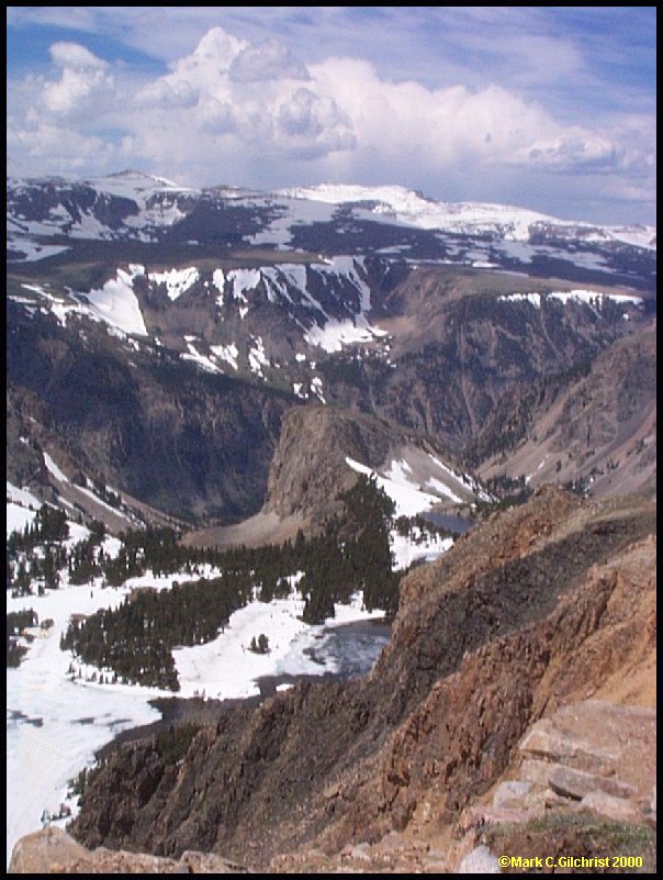 ON THE BORDER between Wyoming and Montana, is Bear Pass. Climb up to 12,000 feet and see places which never thaw out. The lake, way down there, is frozen over, and it's late June. "People in Hell want ice water," an old friend would say. They should move here.