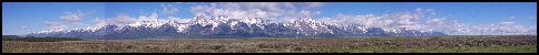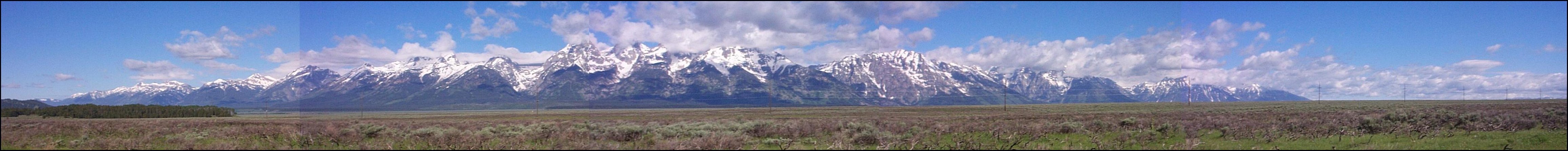 A stunning, panorama shot of the Teton range -- you'll feel like you are there!