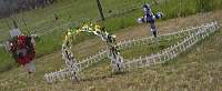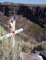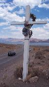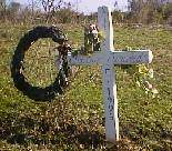 At over 8 feet tall, this is the largest cross I've seen so far - in this area, everything is big. Though there is no name, the wreathes look old and new, as if someone has returned recently. With no grass to mow, it looks like this sturdy memorial will be around for a long time.