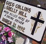 This event occurred seven years ago, yet this sign is brand new. Perhaps it replaced one, with renewed interest in Greg and Shelly, and making a good point.