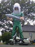 Visit the Launching Pad Cafe in Wilmington, Illinois and let the "Gemini Giant" tower over you. This guy was built in the early 60's, according to Parker.