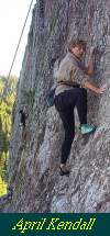 I am not afraid, because Kendall is an accomplished climber - he has even seen this world from the peak of that highest of Tetons. He has earned his stripes by climbing the "Grand" and he even had the chutzpah to begin his attack on that peak after a full day at work. He even scaled this sucker, called the "Rodeo Queen" climb by the people who name these things, just moments before me, and he did it without a belay line to cling to. His wife, April Kendall, climbed after he did, so if I have any fear, it is a fear of failure, of being the only one on the bus ride home who couldn't make it to the top. My fingers are raw, my muscles are beat, my calves are burning and I am about to get "Elvis leg" where my leg will wobble uncontrollably like I'm some cheap, lounge singer.