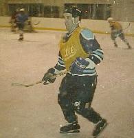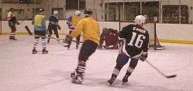 I should keep a positive attitude here. I mean, this is just a pick-up game - they don't even keep score. But these guys must be pretty serious about hockey, coming out here at ten at night each week and paying $120 per hour just to rent the rink. I notice there's no referee; nobody to call fouls, nobody to stop fights, nobody to protect the frail life of a roving reporter on a deadly assignment.